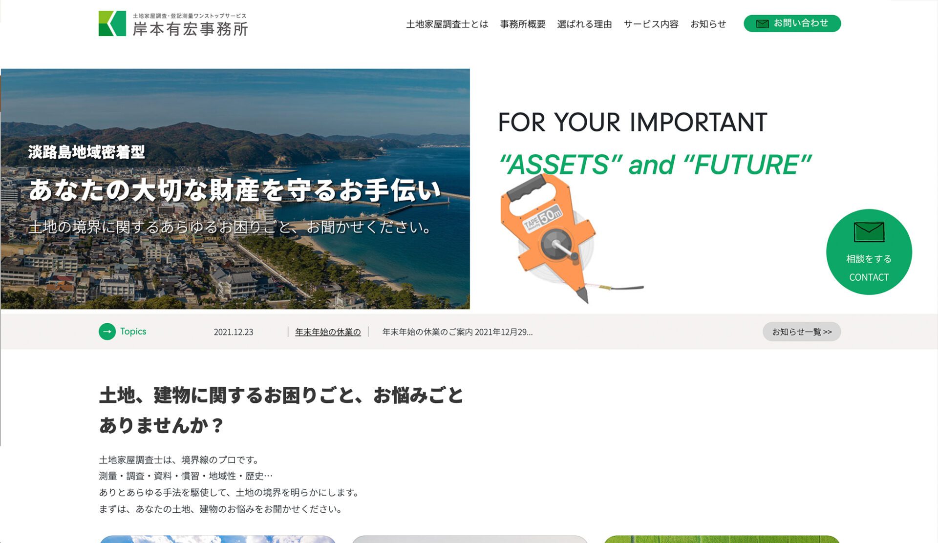 お知らせ更新システム付きのWebサイト。